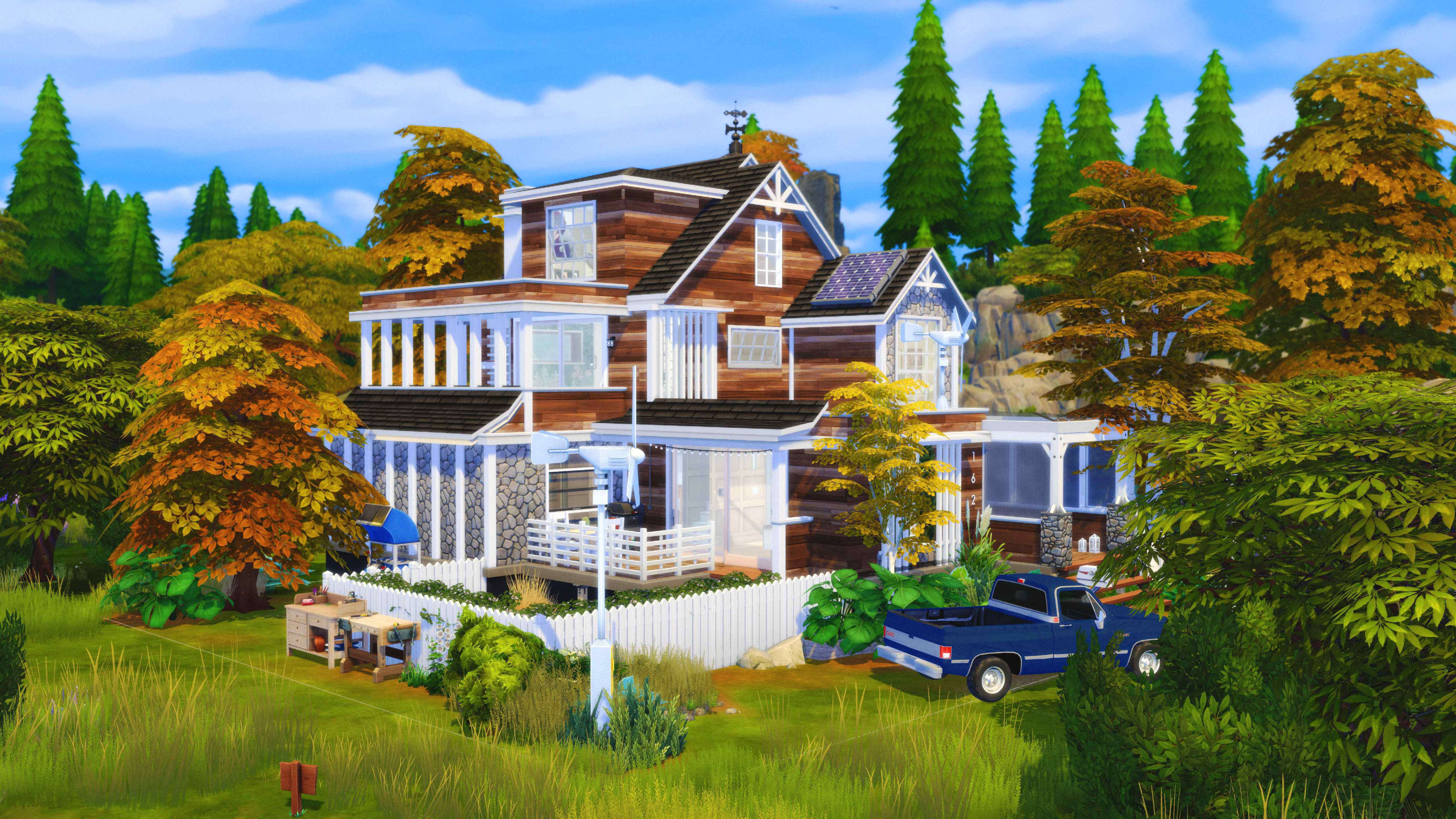 This was one of my favorite builds, and the first one I shared on Twitter. This is soon after Eco-Lifestyle came out and I was in LOVE with all the new objects and build items. I wanted this house to feel tucked away and secluded, but at the same time feel super spacious and a bit luxurious too. Unfotunately since I built this house I have totally revamped my CC folder and most of the items in this house I dont have in my game anymore.